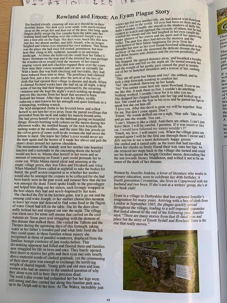 In January 2019 I completed an online fiction writing course with Future Learn (amazing what you can achieve if you get off Facebook for a month!) and as part of that process I began working on a short story, one that would focus on Emmott and Rowland and their meetings at Cucklett Delph during the year of the plague’s visitation to the village of Eyam in Derbyshire. I received great feedback from my peers on the course and was fortunate enough to have my short story published in Chatterbox Magazine, a local literary publication.