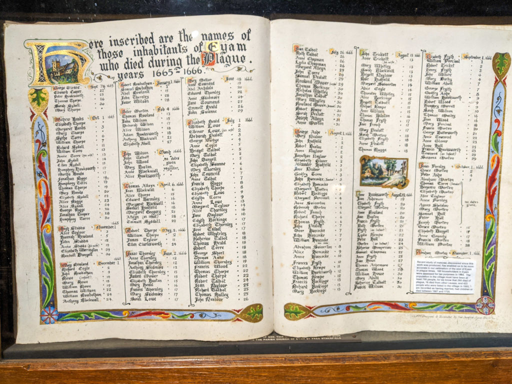 Plague Sunday has been celebrated in the village Of Eyam since the plague’s bicentenary in 1866. It was originally held in mid-August, but now takes place on the last Sunday in August, coinciding with the Wakes Festival (as featured in the novel, Three: A Tale of Brave Women and the Eyam Plague by Jennifer Jenkins) and traditional well-dressing ceremonies. Not only this, for readers of Three, the timing of Plague Sunday being linked to the Wakes will bring to mind Emmott and Rowland’s planned nuptials.